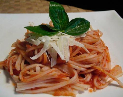Talharim de Palmito de Pupunha com Molho de Tomate e Manjericão